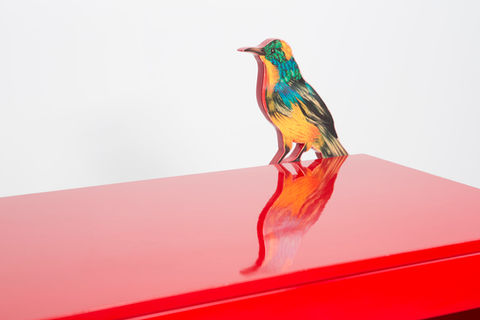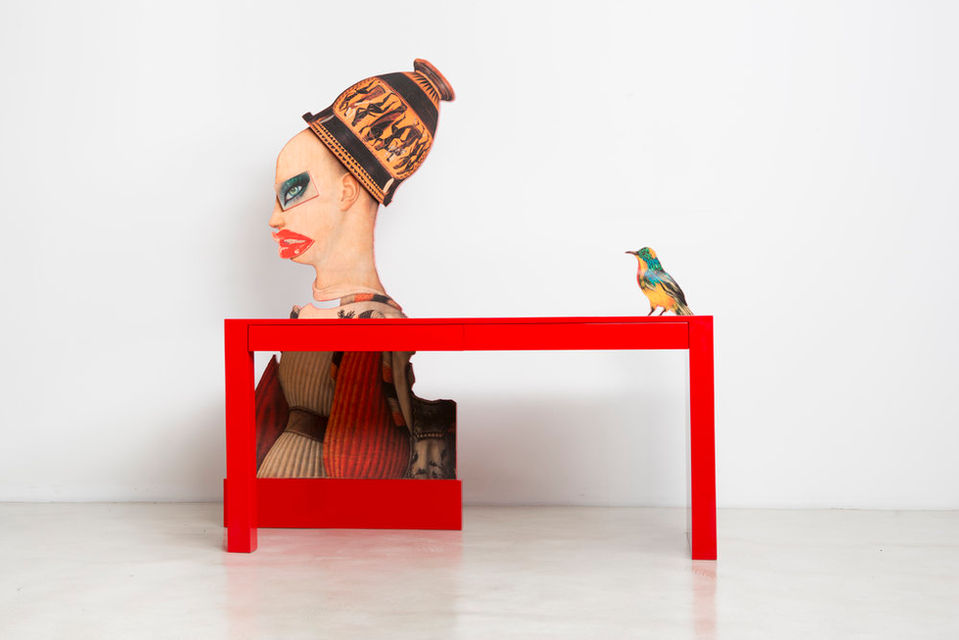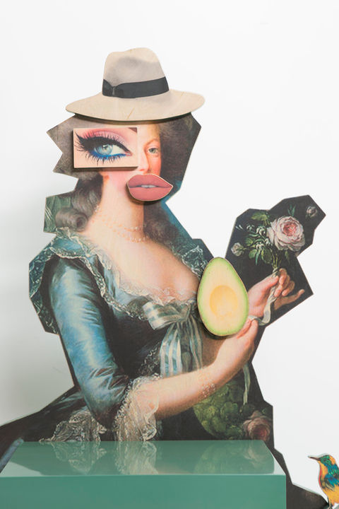 The new work consists of a tridimensional collage printed on paper, wood, aluminum or marble.